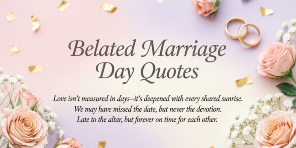 In addition, sending Belated Marriage Quotes reflects sincerity, mindfulness, and care, which are key elements in human relationships. Although timing may sometimes slip, your intention remains powerful, and these quotes can evoke warmth, happiness, and emotional resonance. Finally, whether it’s for a friend, sister, or a special couple, these allow you to celebrate love, reinforce bonds, and leave a lasting impression that goes beyond words.