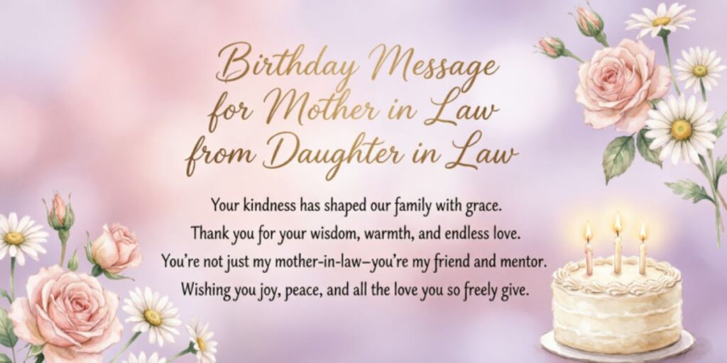 Choosing the right words for Birthday Greetings for Mother in Law: Express Love and Appreciation can sometimes feel confusing, especially because you want to sound respectful, warm, and genuine. However, a thoughtful and carefully chosen message can instantly make her feel valued, loved, and appreciated. Moreover, simple, sincere, and meaningful wishes often leave a stronger impression than long speeches or generic greetings. Therefore, taking a moment to express gratitude through Birthday Greetings for Mother in Law: Express Love and Appreciation can truly brighten her special day and make her feel cherished. In addition, a heartfelt message helps strengthen family bonds, encourages closeness, and shows genuine care. As a result, meaningful birthday greetings become a beautiful, lasting, and memorable way to celebrate her presence, love, and kindness.